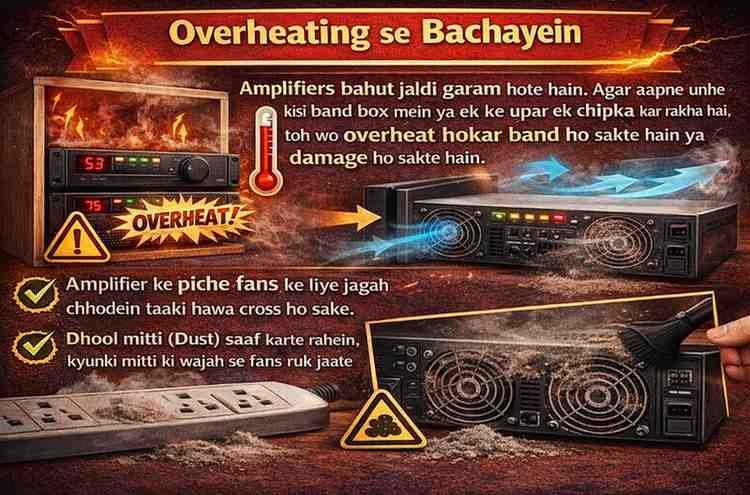 Amplifiers bahut jaldi garam hote hain. Agar aapne unhe kisi band box mein ya ek ke upar ek chipka kar rakha hai, toh wo overheat hokar band ho sakte hain ya damage ho sakte hain.